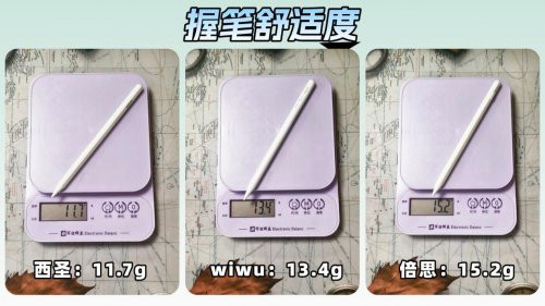 握笔的舒适度是电容笔体验中不可忽视的一个重要因素,它直接影响到书写过程中的手感和长期使用的舒适性。一支设计得当的电容笔,不仅需要适配不同手型,还要确保重量适中、握持舒适,减少长时间使用时的疲劳感。为此,我们对西圣Pencil X、wiwu9Pro、倍思笔畅灯显电容笔进行了对比测试,重点评估了它们在长时间使用中的舒适度表现。